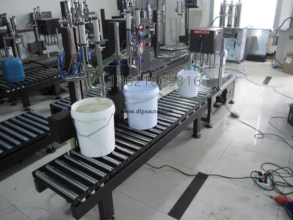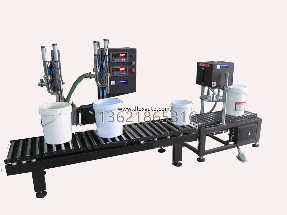 稱重液體灌裝機+塑料桶蓋壓蓋機