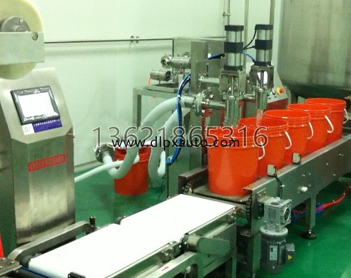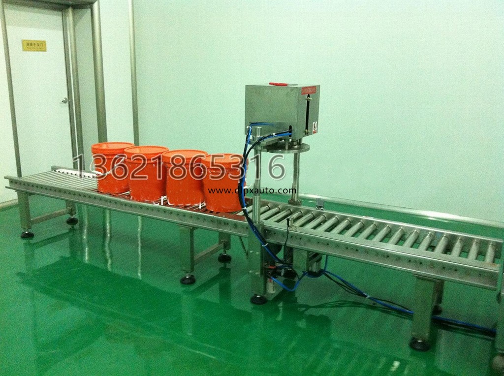 自動(dòng)稱重灌裝旋蓋線 YCS/20L 工作流程:手動(dòng)放桶---自動(dòng)輸送----自動(dòng)定位灌裝----手動(dòng)放蓋-----自動(dòng)壓蓋---- --自動(dòng)輸送。