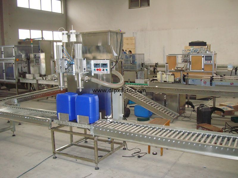 產(chǎn)地:上海特點:全自動,效益高,整套生產(chǎn)線適用范圍:石化、化工、日化, 制藥,食品,農(nóng)藥等流體使用說明2.1.采用柯力傳感器,使用穩(wěn)定、壽命長;2.2. PLC控制稱重,高精度;2.3.雙速灌裝(開始時快速灌裝,接近目標量時慢速灌裝)確保灌裝精度;2.4.真空回抽系統(tǒng),確保不滴漏;2.5.自動插口功能,節(jié)約時間、人工;工作原理本機程序由觸摸屏操作、PLC控制通過稱重傳感器、液位傳感器、進出桶傳感器
