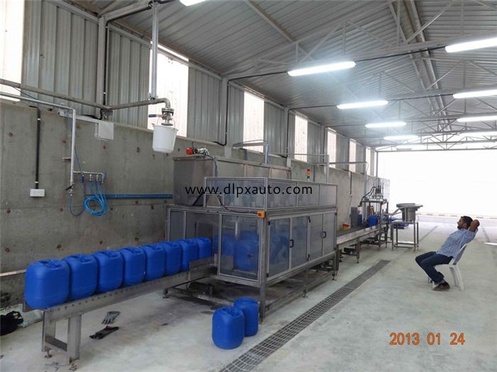 產(chǎn)地:上海特點(diǎn):全自動(dòng),效益高,整套生產(chǎn)線適用范圍:石化、化工、日化,制藥,食品,農(nóng)藥等流體使用說明手紅放桶一自動(dòng)輸送一6頭自動(dòng)定位稱重灌裝 自動(dòng)理蓋一 自動(dòng)旋蓋一 重 量檢測(cè)一-自動(dòng)貼標(biāo)- -自動(dòng)噴碼一輸送到碼垛位一 半自動(dòng)碼垛- 托盤輸送-叉車運(yùn)走2.產(chǎn)品介紹:2.1.采用稱重灌裝傳感器,使用穩(wěn)定、壽命長(zhǎng);2.2. PLC控制稱重,高精度;2.3.雙速灌裝(開始時(shí)快速灌裝,接近目標(biāo)量時(shí)慢速灌裝