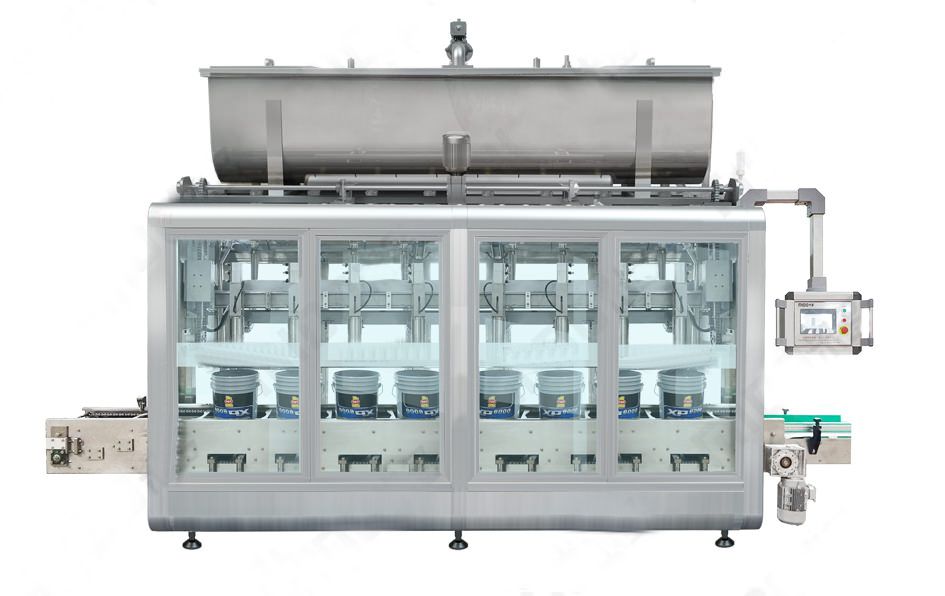 該系列液體灌裝機(jī)適用于食用油、潤滑油、涂料等液態(tài)產(chǎn)品。整機(jī)采用PLC微電腦控制,可對液體灌裝機(jī)整體調(diào)整或單頭進(jìn)行微調(diào),灌裝