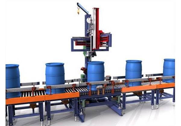 人工上空桶-空桶自動(dòng)輸送-空桶自動(dòng)尋口-自動(dòng)定量灌裝- 重桶自動(dòng)輸送-人工鎖蓋即完成。
