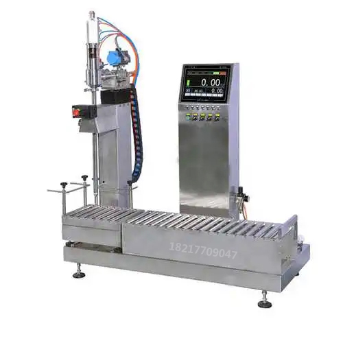 工作流程:空桶自動(dòng)輸送-空桶撥至稱重區(qū)同時(shí)自動(dòng)對(duì)桶口-空桶自動(dòng)除皮-自動(dòng)定量灌裝-自動(dòng)推重桶至鏈板輸送線-自動(dòng)上蓋同時(shí)自動(dòng)鎖蓋-重桶輸送到重桶待提區(qū)-人工提走即完成;