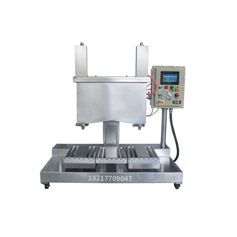 操作流程:開機(jī)---人工放桶至秤臺(tái)---按【開始】鍵、灌槍自動(dòng)插入包裝桶底部--自動(dòng)去皮--自動(dòng)打開灌槍開始灌裝---大、小、微量三段式灌裝---灌槍隨液面自動(dòng)提升--到達(dá)目標(biāo)值--灌槍自動(dòng)關(guān)閉并升至桶外---灌裝完成。