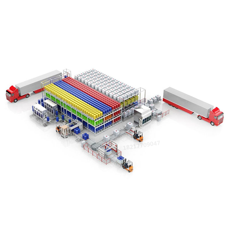 灌裝流程:人工上桶,自動輸送,自動開蓋,自動對口,自動灌裝,自動擰蓋,自動碼垛。