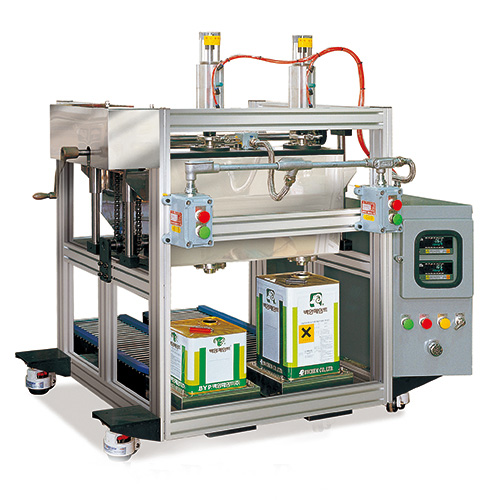 - 當(dāng)操作者坐著將空罐放在稱重臺上時,使用服務(wù)料斗的原料完成定量灌裝。