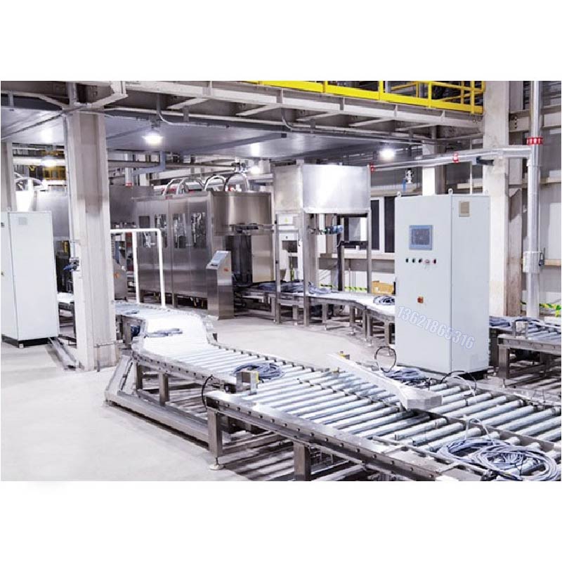 操作流程:人工開蓋將空桶放在輸送線上,輸送線啟動(dòng),自動(dòng)輸送至灌裝工位,自動(dòng)對口自動(dòng)灌裝,首先進(jìn)入快速落料,到達(dá)一定重量(設(shè)定的小料重量)時(shí)轉(zhuǎn)換為慢速落料,當(dāng)重量到達(dá)目標(biāo)值時(shí)停止落料,計(jì)量完成即灌裝完成。當(dāng)灌裝完成后,自動(dòng)輸送至成品區(qū)人工鎖蓋,叉車移走成品桶,灌裝流程結(jié)束!