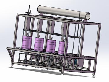 Fully automated filler for weighted and production line filling of 1 to 60-litreRound or rectangular- based metallic or plastic cans, barrels and drums. The Machine may be equipped with multiple works