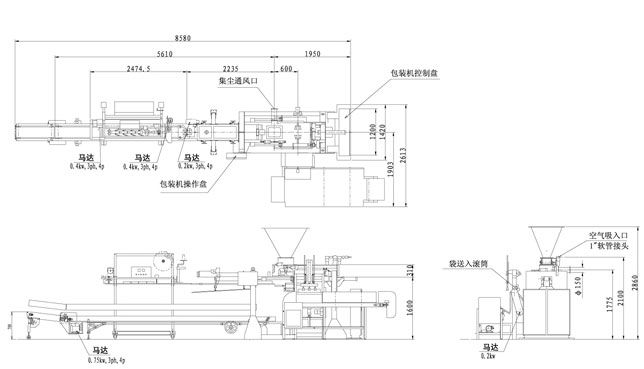 | 袋尺寸 | 長(毫米) | 紙袋750-950 編織袋550-1050 塑料袋550-750 | 紙袋580-640 | 700-900 | 750-850 |
